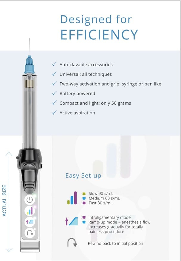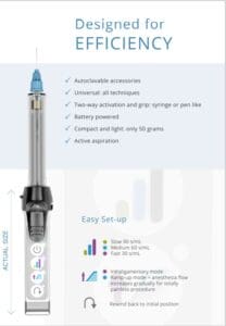 – Controlled initial force and constant flow for smoother injections: Increases anesthesia success rate and saves time