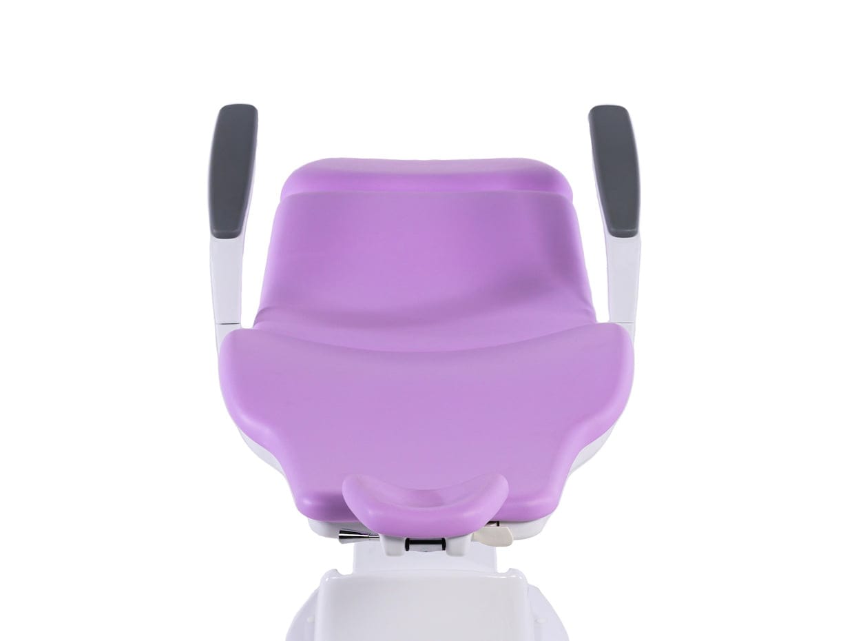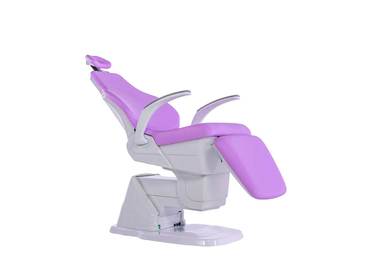 LINDA EVO is the ultimate mid-range knee-break chair, perfectly suitable to treat all patients, even children, elderly people, and persons with reduced mobility, for both dental and medical procedures. The distinctive features of the well renown Tecnodent kneebreak chair concept, such as compactness, easy accessibility, clean lines, strong solidity, and comfort of use, are preserved and empowered with modern design, technology, and structure. Low voltage motors, with Hall sensor limit switches, guarantee smoothness and perfect movement fluidity, thanks also to softstart and soft-stop features, while the unmistakable designer armrests and split-section upholstery, along with the enveloping backrest, uphold the smart design statement. Versatile and comfortable, LINDA EVO embodies the perfect “multifunctional smart knee-break”, thanks to its elegant yet compact, ergonomic, and functional style.