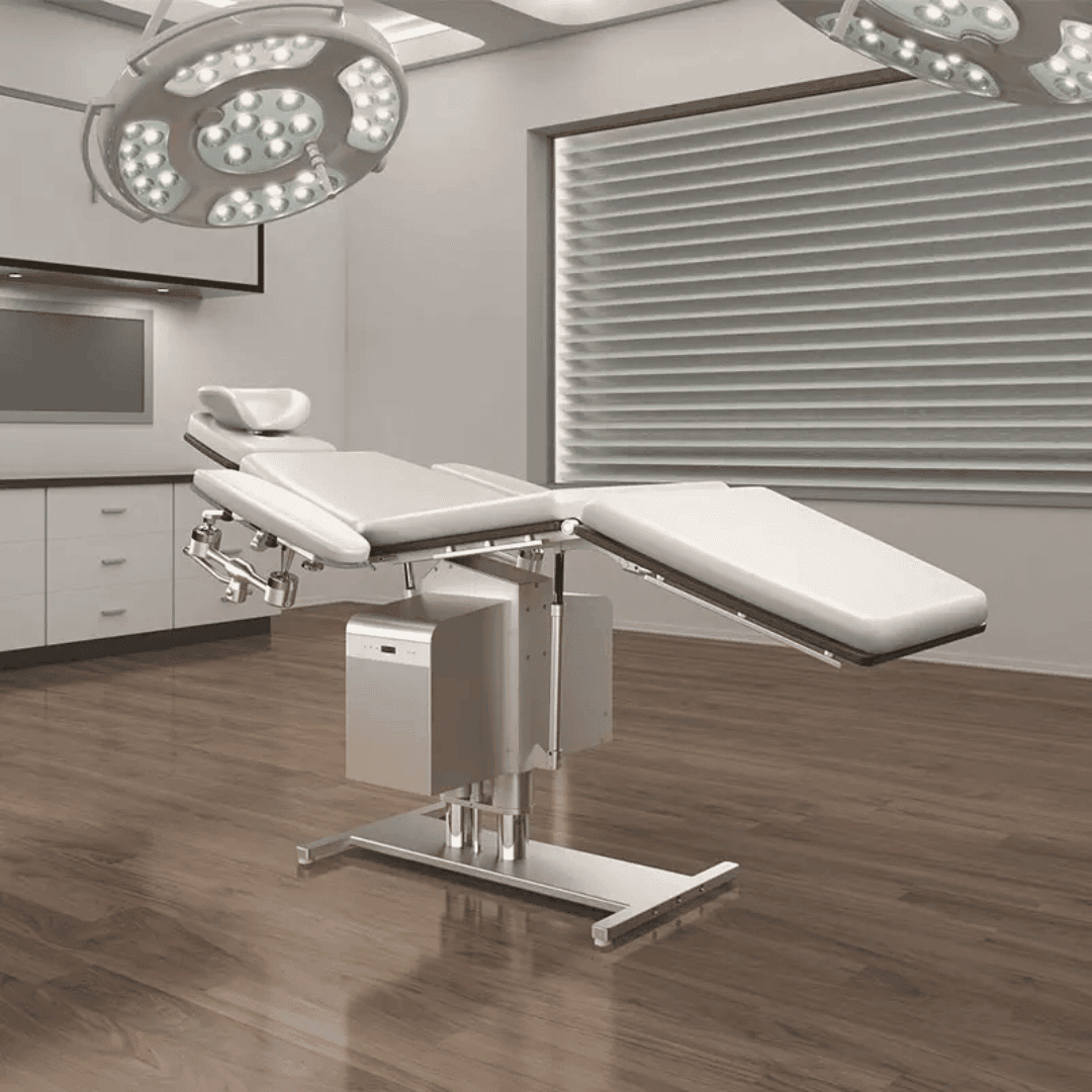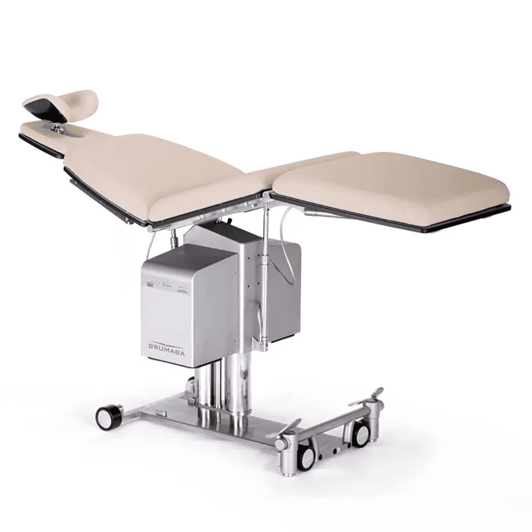 Like most of BRUMABA’s operating tables, the GENIUS does not require a fixed installation in the floor, as it is designed to be mobile. A significant difference to the top models is the “airplane function” which is not installed. It cannot be tilted sideways like the PRIMUS. It has a plate/rail system which allows a maximum patient weight of 250 kg. Like all models, you can also customize the GENIUS. Choose from 35 upholstery colours and get advice on our extensive range of accessories.