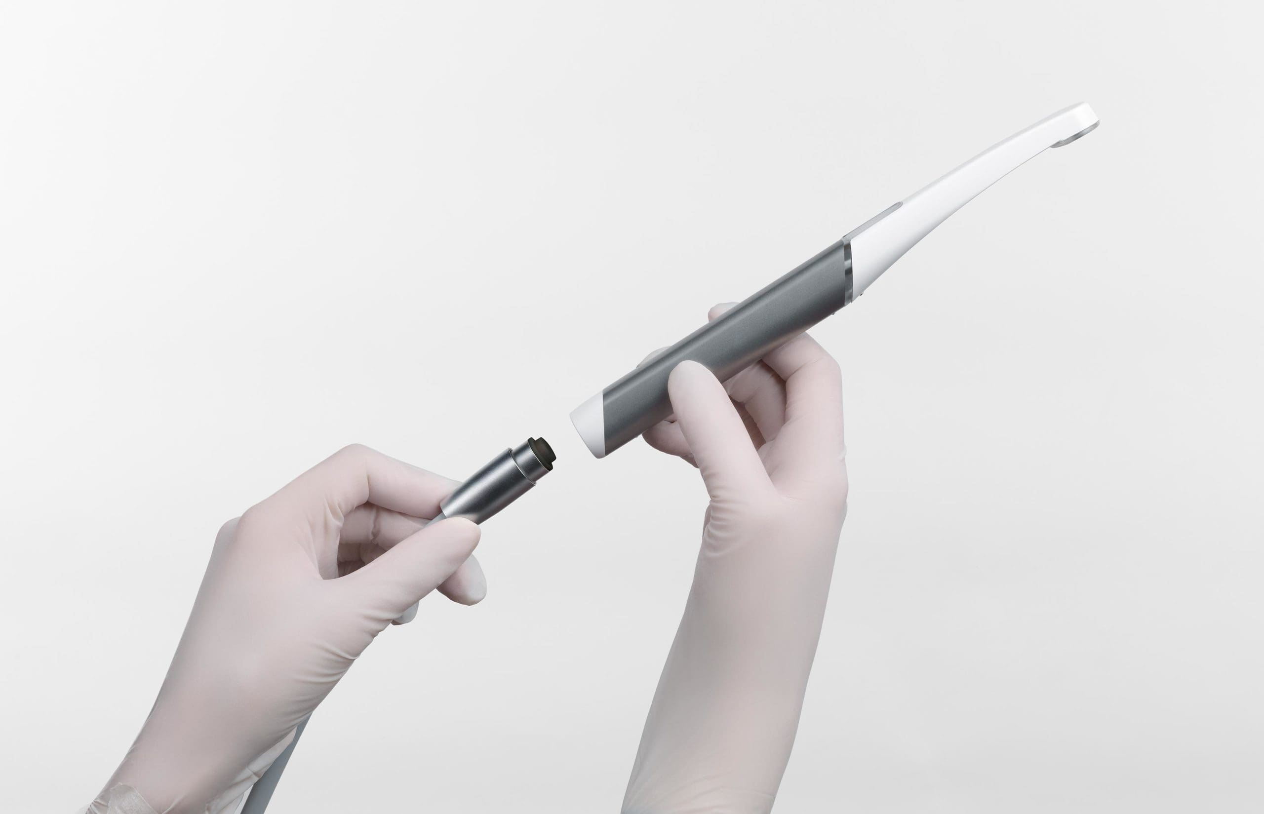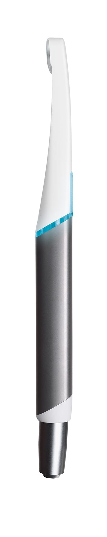 FREE TO IMAGE Perfect in every circumstance: slim tip (9.5 mm) with broad field of view (90°), partially retroflexed for extremely comfortable intraoral scanning. Handy and accurate, with a mere 8 mm distance between the optics centre and the tip of the handpiece. The innovative multifunction button guarantees maximum freedom and user-friendliness.
