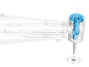 bur-locking and rotation drive mechanism Provides staunch clamping of the bur resulting in vibration-free stability and comfort. Bur changing is quick, accurate, and safe, thanks to