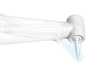 Accu-Spray Quattro Mix™ with dualook™ illumination Converges four asymmetrical laser-precise air/water sprays onto the tip of the bur for rapid and even cooling of the operative field. In combination with two multi-strand optical glass conductors, unobscured intraoral visibility is guaranteed