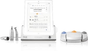 The simple and discreet screen provides you with access to all the information you need to ensure your procedure is a success: choice of handpiece, speed, torque, irrigation flow and direction of rotation