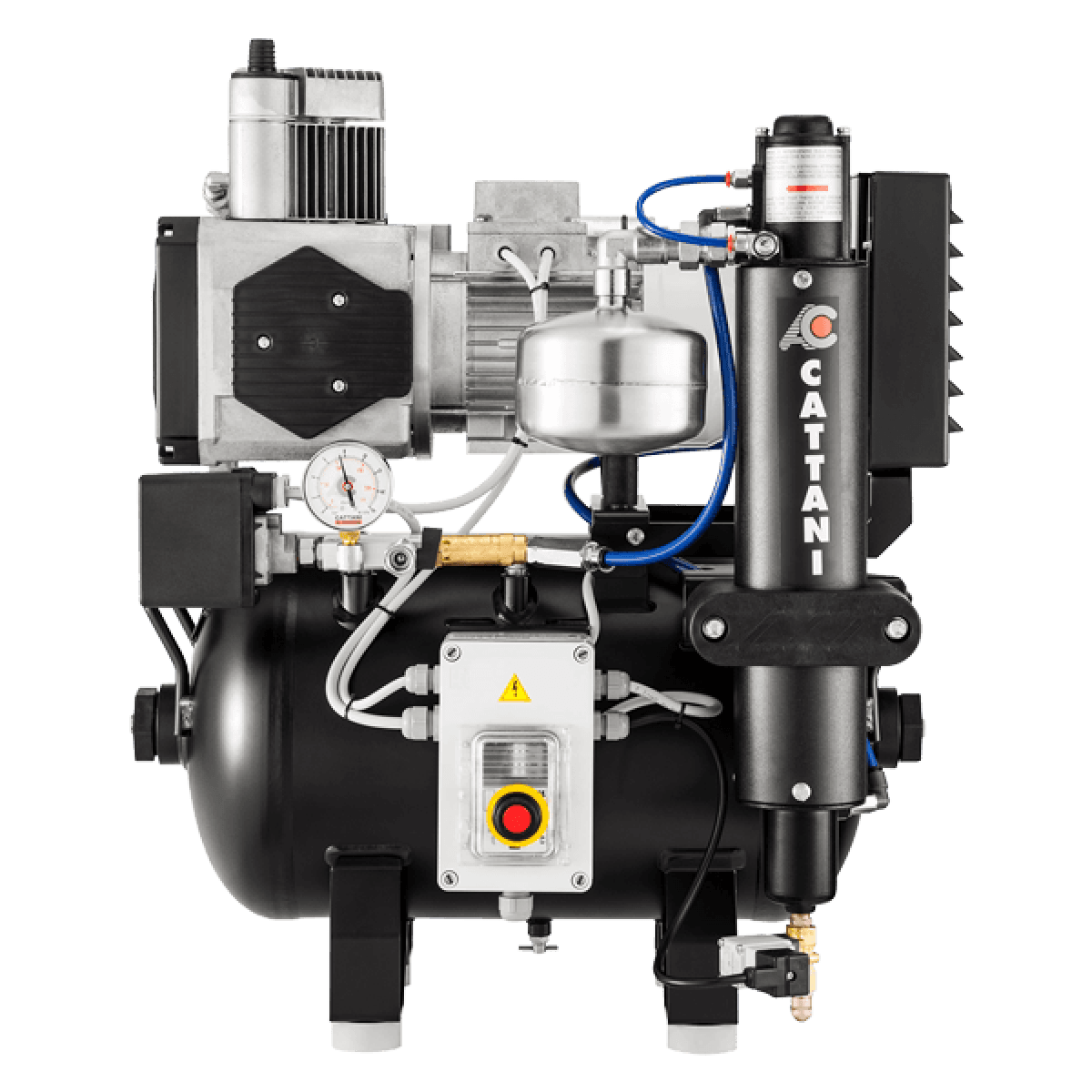 Cattani compressors, which come in sizes to suit every clinic, are manufactured to the strictest standards in Parma, Italy. Each unit is rigorously tested before delivery, allowing the clinician to have the utmost confidence in its performance and reliability