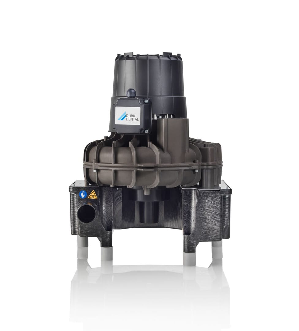The dry suction systems from DÜRR DENTAL combine extremely powerful performance with exceptionally quiet operation. The V suction units are called dry systems because the aspirated substances are quickly guided into a separation unit and then, if necessary, to an amalgam separator. These components are integrated into the treatment unit in your dental practice. Only dry air reaches the suction unit.