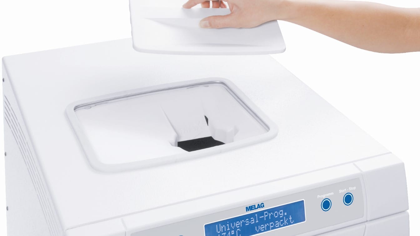 Performance: High loading capacities and quick sterilization times enable effi cient workfl ows. Short sterilization processes for your practice and clinic: Quick-Program (including pre-vacuum) sterilizes unwrapped instruments in only 15 minutes*. Larger quantities of wrapped instruments can be reprocessed in only 28 minutes* using the Universal-Program. MELAG provides a wide range of insert racks to ensure an individual use of the sterilization chamber. The aligned accessories make for the optimal loading of the steam sterilizers with up to 7 kg of instruments.